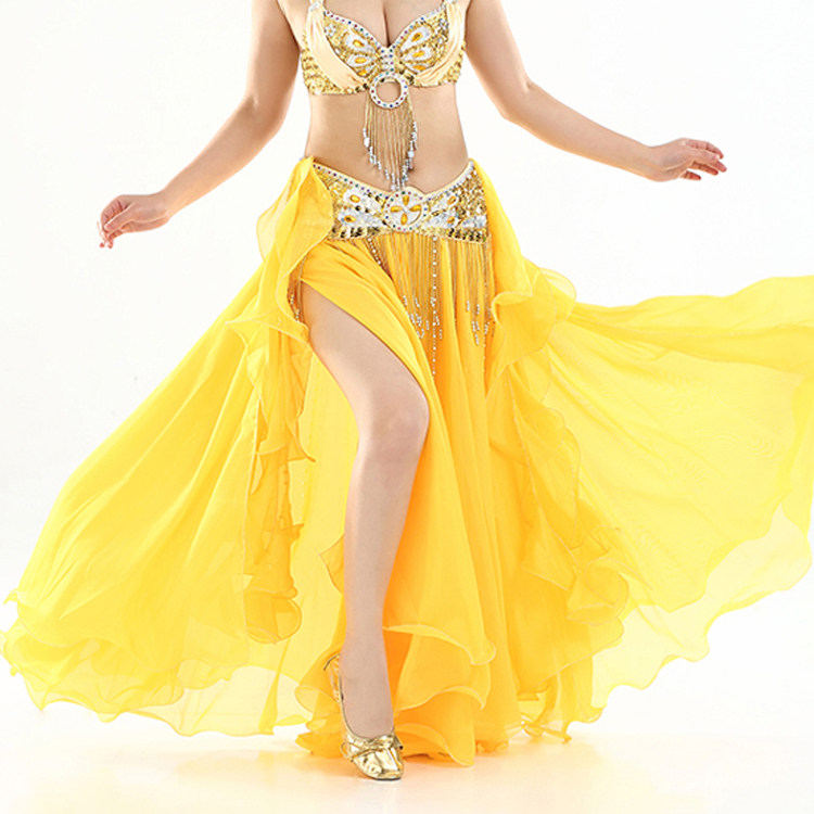 Belly dance dresses with high opening fork Indian dance performance dress Women's under-clothing Snow spinning Leaf Double Switch White Dress