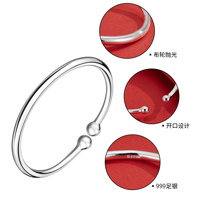 Shun qin silver Lou S999 sterling silver bracelet for baby, baby, baby, baby, baby, open foot silver bracelet
