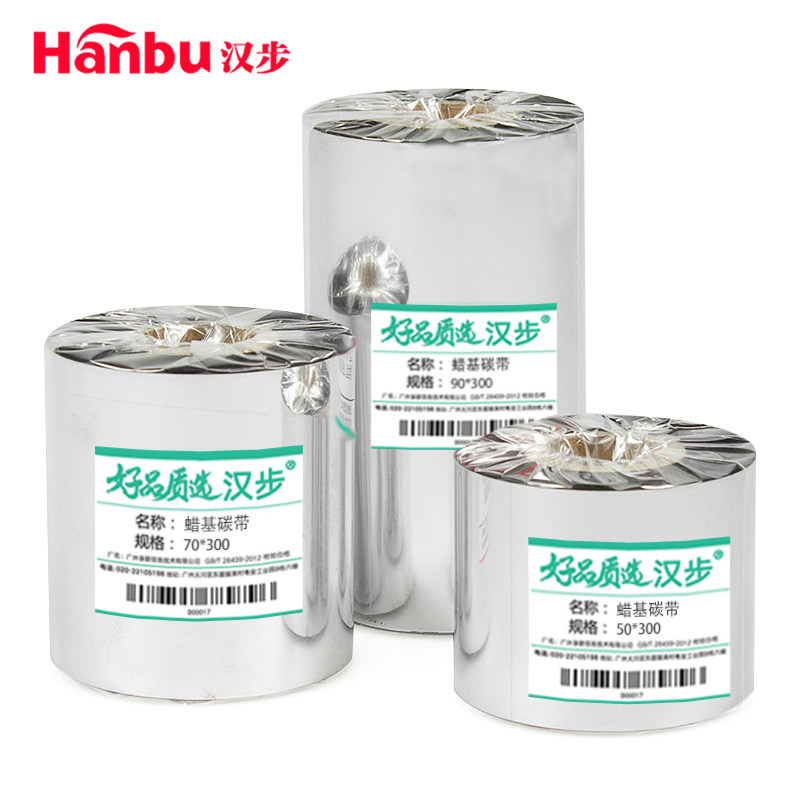Hanbu large tube core reinforced wax based ribbon roll 50 70 80 90 110mm*300m copper plate self-adhesive thermal transfer label machine printing paper ribbon TSC barcode printer 110×300