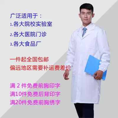 White coat long-sleeved experimental suit Student doctor suit male and female beauty physician nurse overalls custom LOGO printing