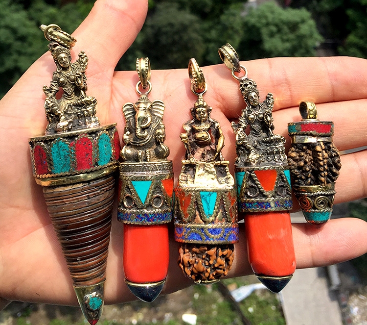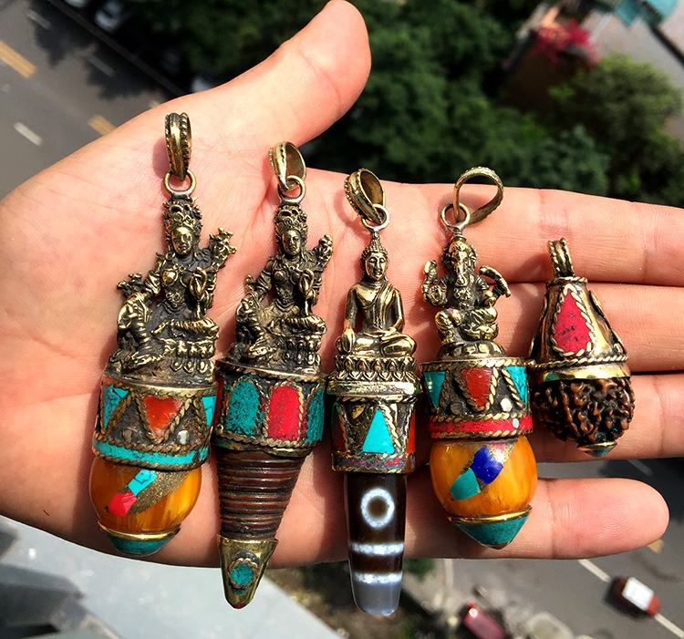 Indian gilt buddha pendant gold-plated safe lucky transfer bead necklace pendant Guanyin God of wealth beeswax turquoise natural