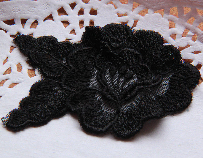 97 handmade DIY clothing accessories lace embroidered black soft net fine wedding dresses flower cloth patch with patched patina flower