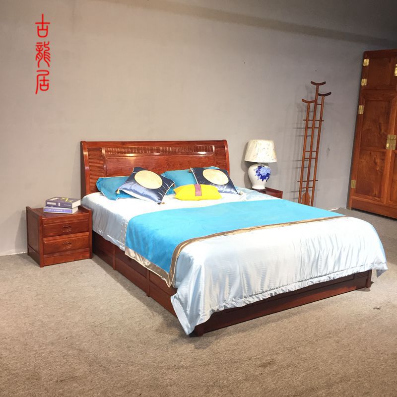Ancient Longhu Red Wood Furniture Modern Minimalist Master Bedroom With Double Bed Flowers Pear Tinged Hedgehog Purple Sandalwood Chinese Classical Large Bed