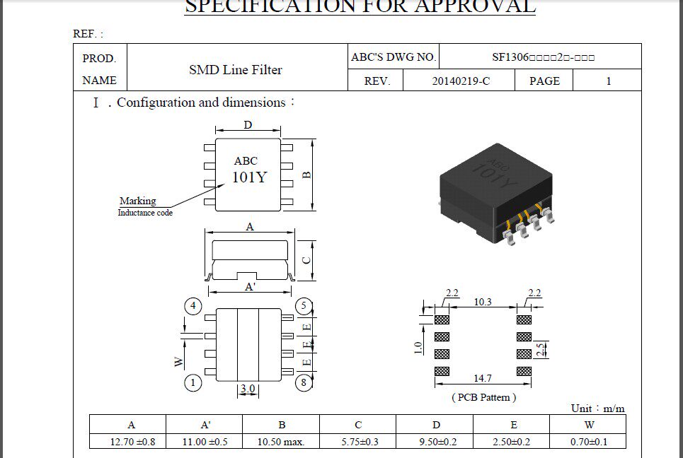 ABC102Y patch line filter instead of WE 744202 common mode inductor 1000uH New