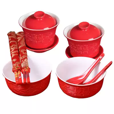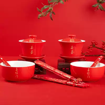 Wedding cup to tea cup to cup Happy bowl to bowl chopsticks tea set set Wedding couple home wedding supplies Daquan