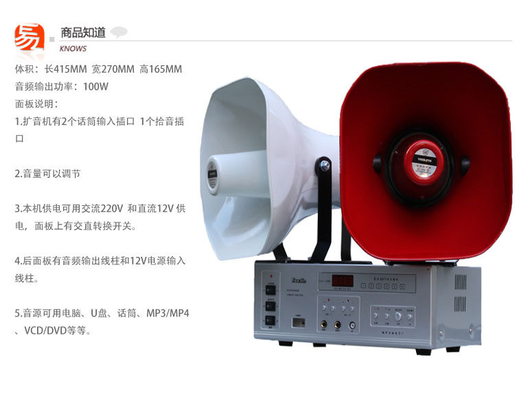 Yangacoustic Amplifiers 50w Dual Horn Sets Line Handheld screers transmitting distance 800 m Above the power amplifier