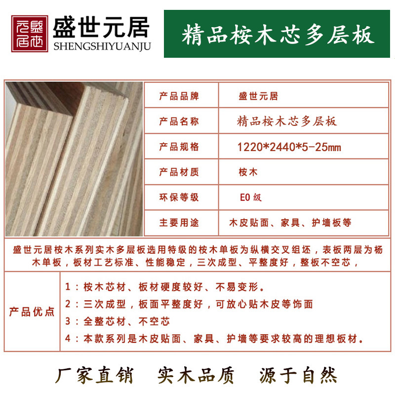 Shengshi Yuanju 5-25mm EO grade multilayer board factory direct sales willow eucalyptus core furniture board veneer glued multilayer board