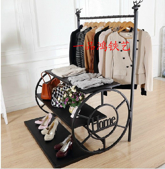 Iron wedding dress hanger display stand clothing store high-end shelf floor-to-ceiling belt plate hanging shoe bag rack wheel hanger