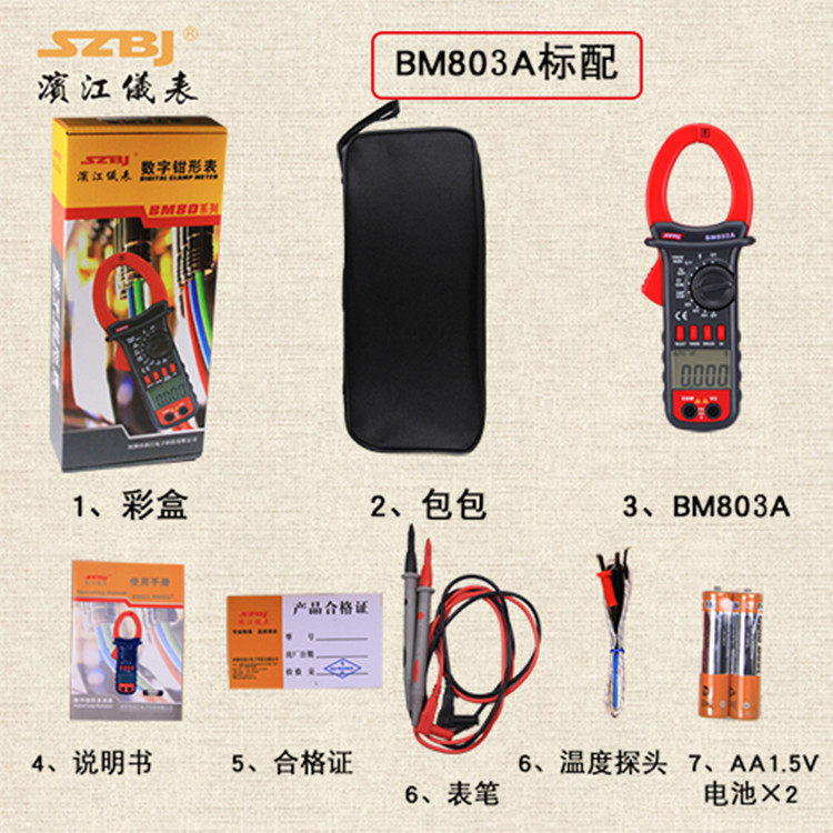 Binjiang BM803A digital clamp meter AC/DC 1000A resistance capacitance frequency temperature duty cycle measurement