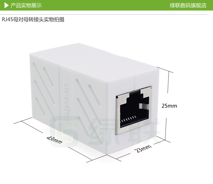Green Union RJ45 network route connector to joint Internet dual-pass head network straight-head model block network route extension