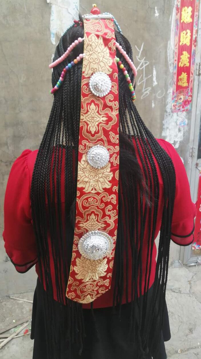Tibetan head decorated with classical dance headwear female Mongolian hair headwear Tibetan braid children dance hat Mongolian wig