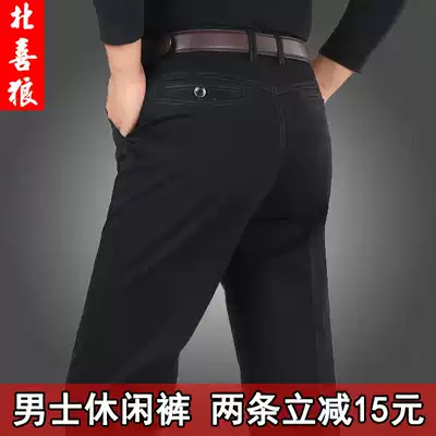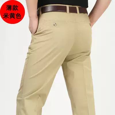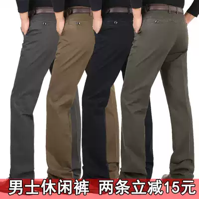 Summer men's casual pants men's pants middle-aged autumn and winter high-waisted cotton loose straight non-ironing trousers dad pants