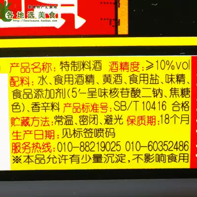 Water edible alcohol yellow rice wine edible salt monosodium glutamate food additive (5-flavored nucleoside disodium caramel color) spices, etc. shall be subject to the actual information of the outer packaging of the product.