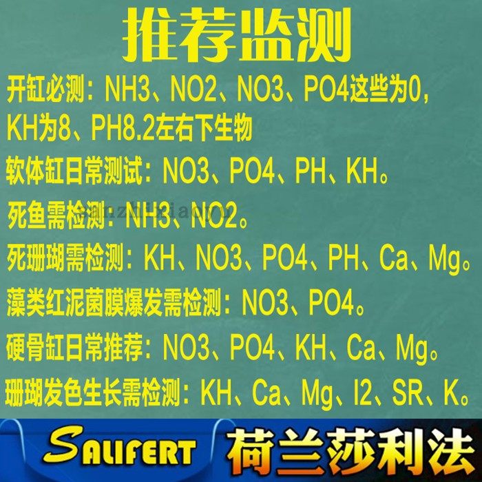 Netherlands Salifert Sali method PH NO2 NO3 KH PO4 Sr Ca I2 Cu potassium seawater reagent
