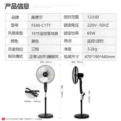 Odell floor electric fan Remote timing floor fan home moving fan special electric fan large wind fan
