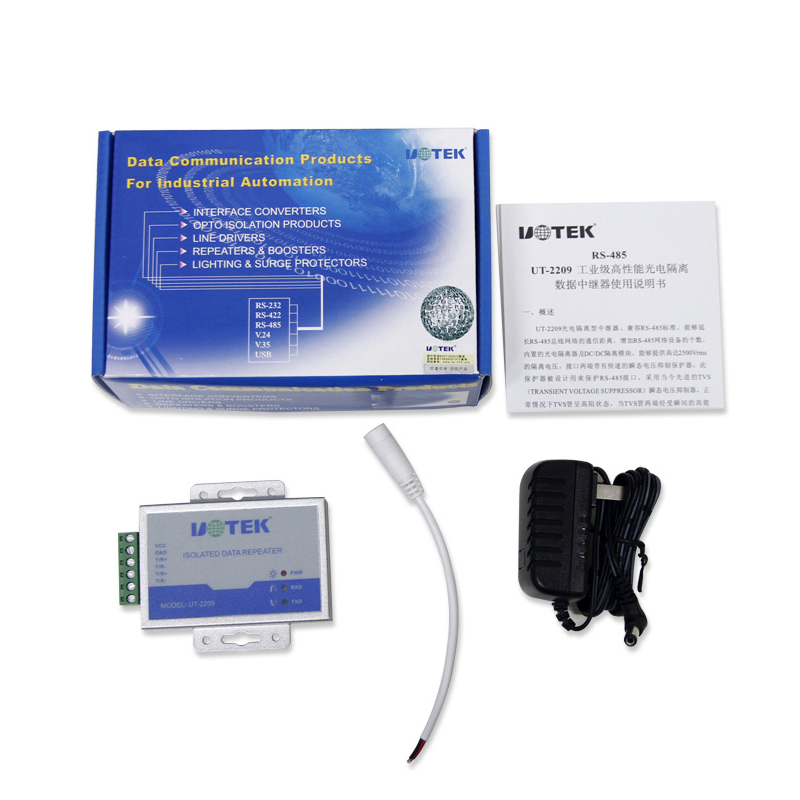 Yutai 485 repeater industrial grade photoelectric isolation lightning protection RS485 signal extender amplifier UT-2209 anti-surge protection 485 signal extender rs485 reception increase
