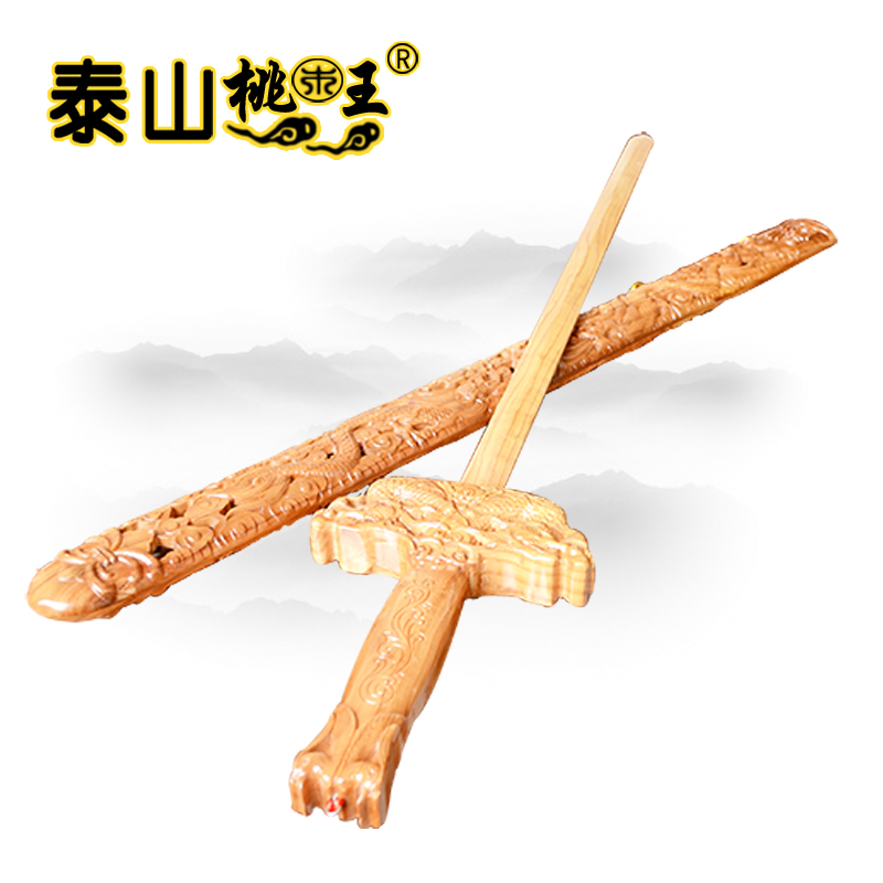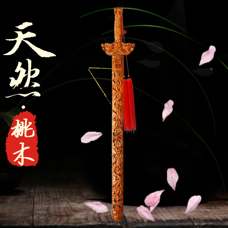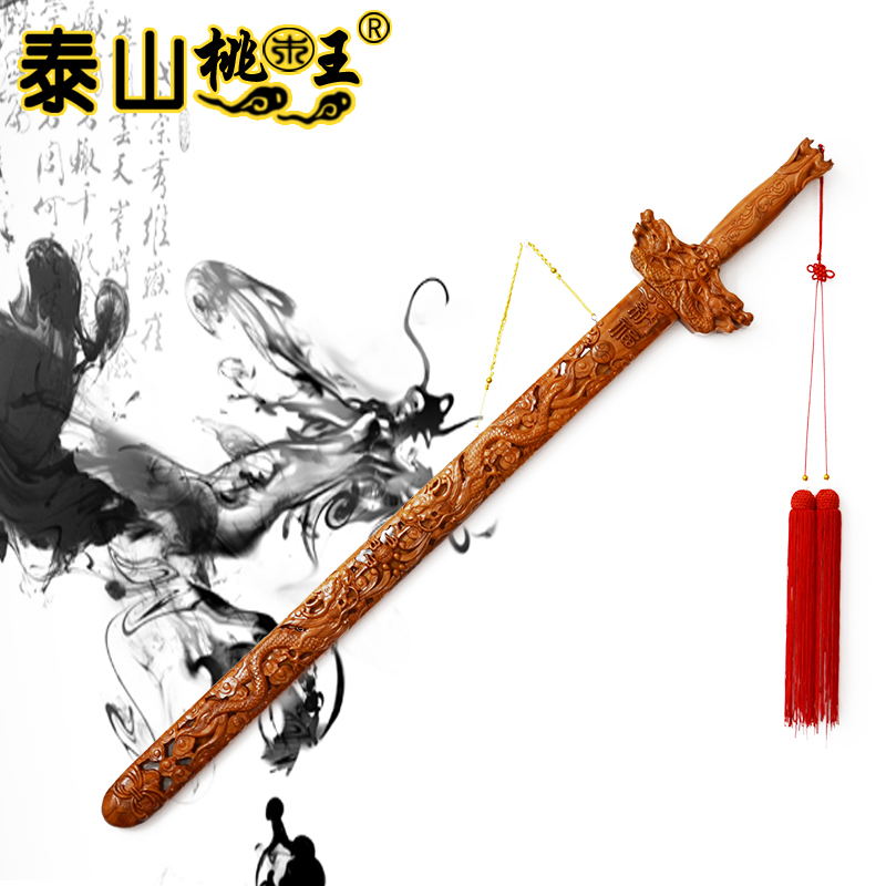 Peach wood king wood carving Feicheng peach wood sword peach wood six dragons hollowed out peach wood sword porch supplies Ruyi peach wood