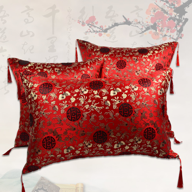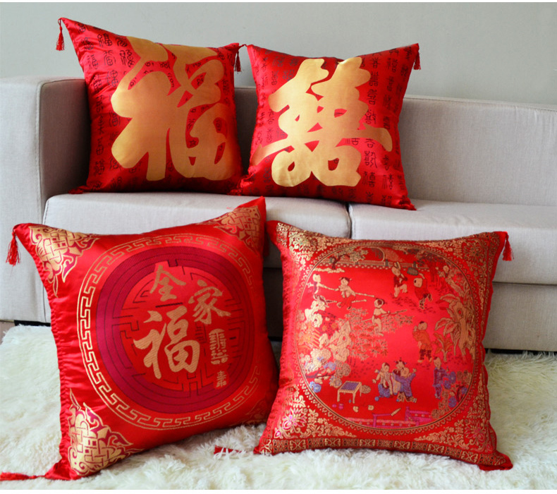 Happy word pillow Family portrait Fu word pillow Baizitu pillow Hundred years of good luck (satin) Gong Xi Fa Cai Auspicious and auspicious dragon and phoenix show auspiciousness Welcome the spring and receive blessings
