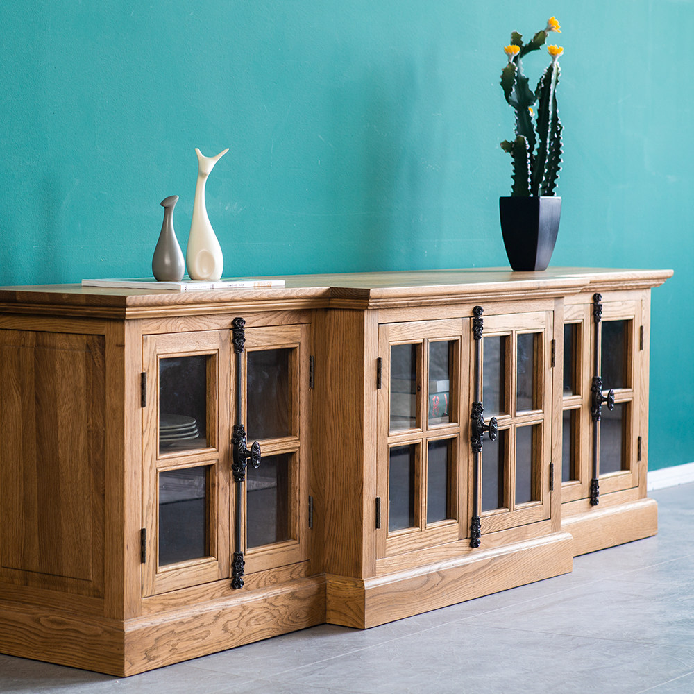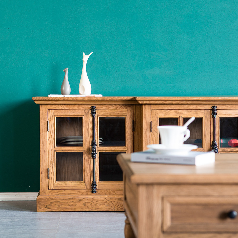Imported American country French oak solid wood TV cabinet high light luxury log Sky parking lock living room locker