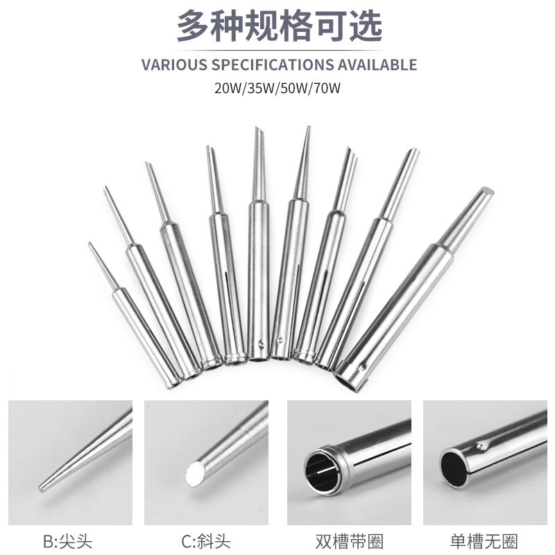 20W Ordinary Bevel Head 2mm (20 Sticks) 20W Ordinary Bevel Head 3mm (20 Sticks) 20W Thickened Round Tip (20 Pieces) 20W Thickened Bevel Head 3mm (20 Sticks) 35W Ordinary Bevel Head 2.2mm (20 Sticks) 35W Ordinary Bevel Head 3.3mm (20 Sticks) 35W Thickened Round Tip (20 Pieces) 35W Thickened Bevel Head 3.3mm (20 Pieces) 50W Ordinary Bevel Head 2.2mm (20 Pieces) 50W Ordinary Bevel Head 3.5mm (20 Pieces) 50W Thickened Bevel Head 3.2mm (20 Pieces) 50W Thickened Inclined Head 3.3mm (20 Pieces). 50W thickened bevel head 5mm (20 pieces) 70W ordinary bevel head 5.5mm (20 pieces)