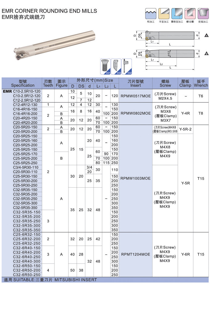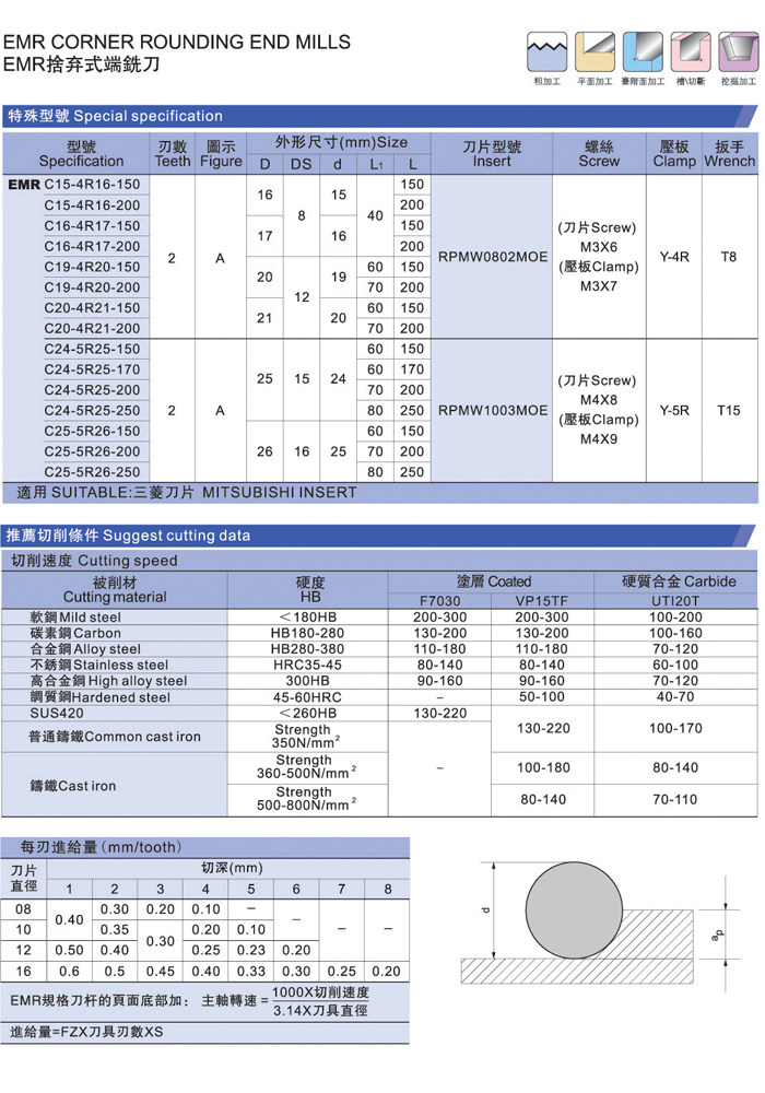 Dek anti-shock plus hard open careless knife-mounted R5 milling cutter sheet EMR C20-5R20-150 200