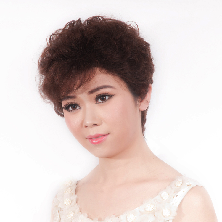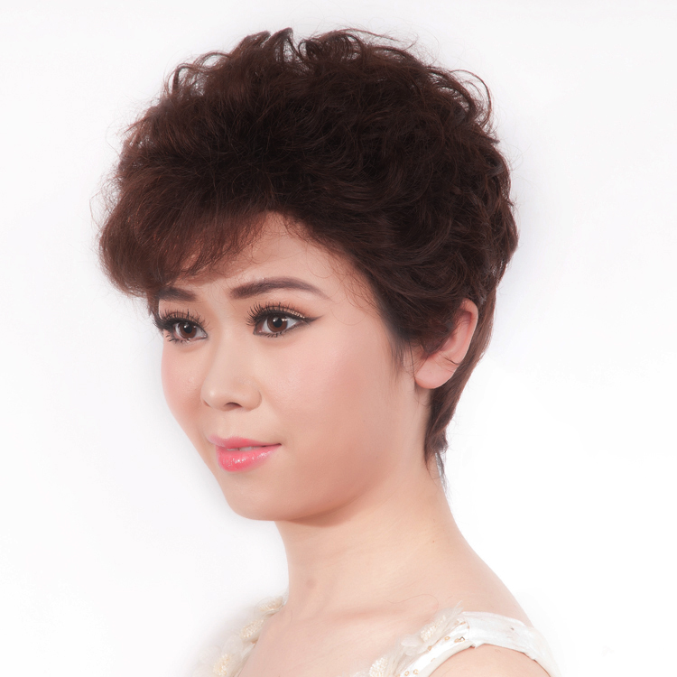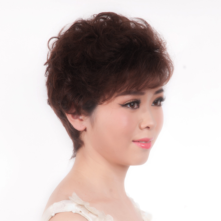 Middle-aged and elderly wig real hair mother short hair female harsh fluffy short curly hair natural breathable wig