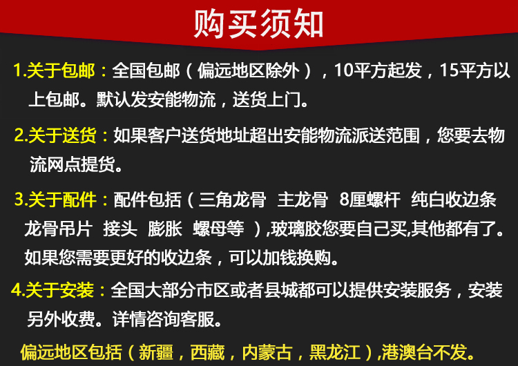 One square thickened accessories one square ordinary accessories 38 main keel about 500 g 38 main keel about 600 grams 90 triangle keel about 430 grams 98 triangle keel about 530 grams 6 li screw 8 li screw white edge A2.7 cm wide fast hanging 6 li small accessories 8 small accessories stainless steel 90 triangle keel about 430 g stainless steel 38 main keel about 600 g double keel lamp (black and white optional) small translucent edge (black and white optional)