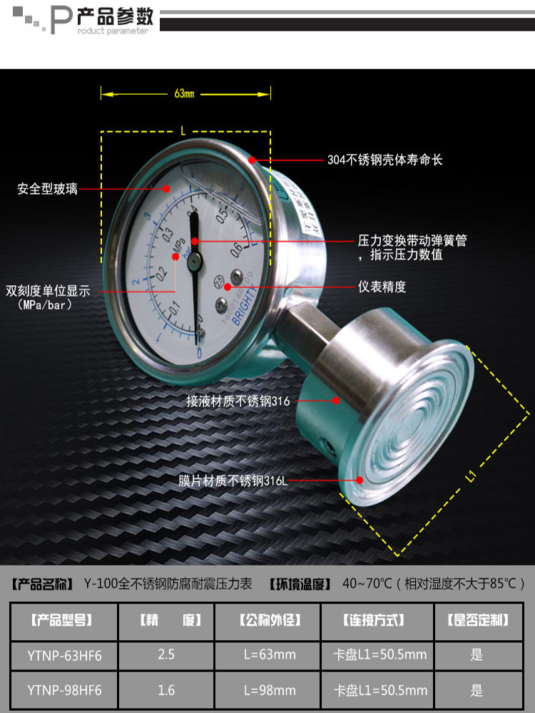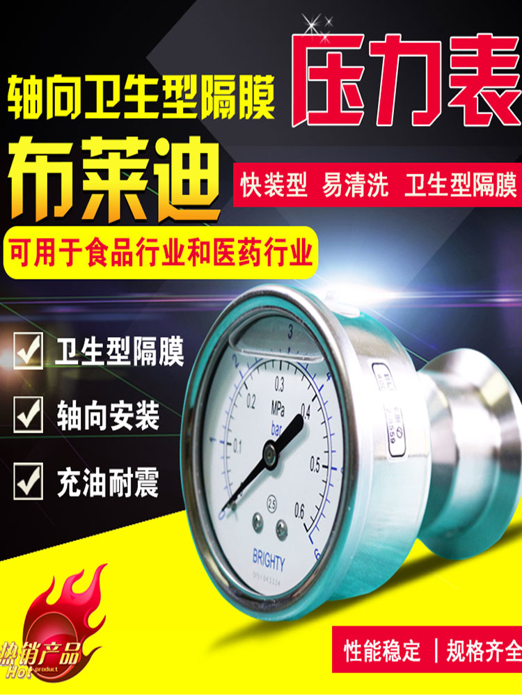 Beijing Brady YTNP63F6 stainless steel shock-resistant diaphragm pressure gauge Sanitary quick loading chuck anti-corrosion hot sale
