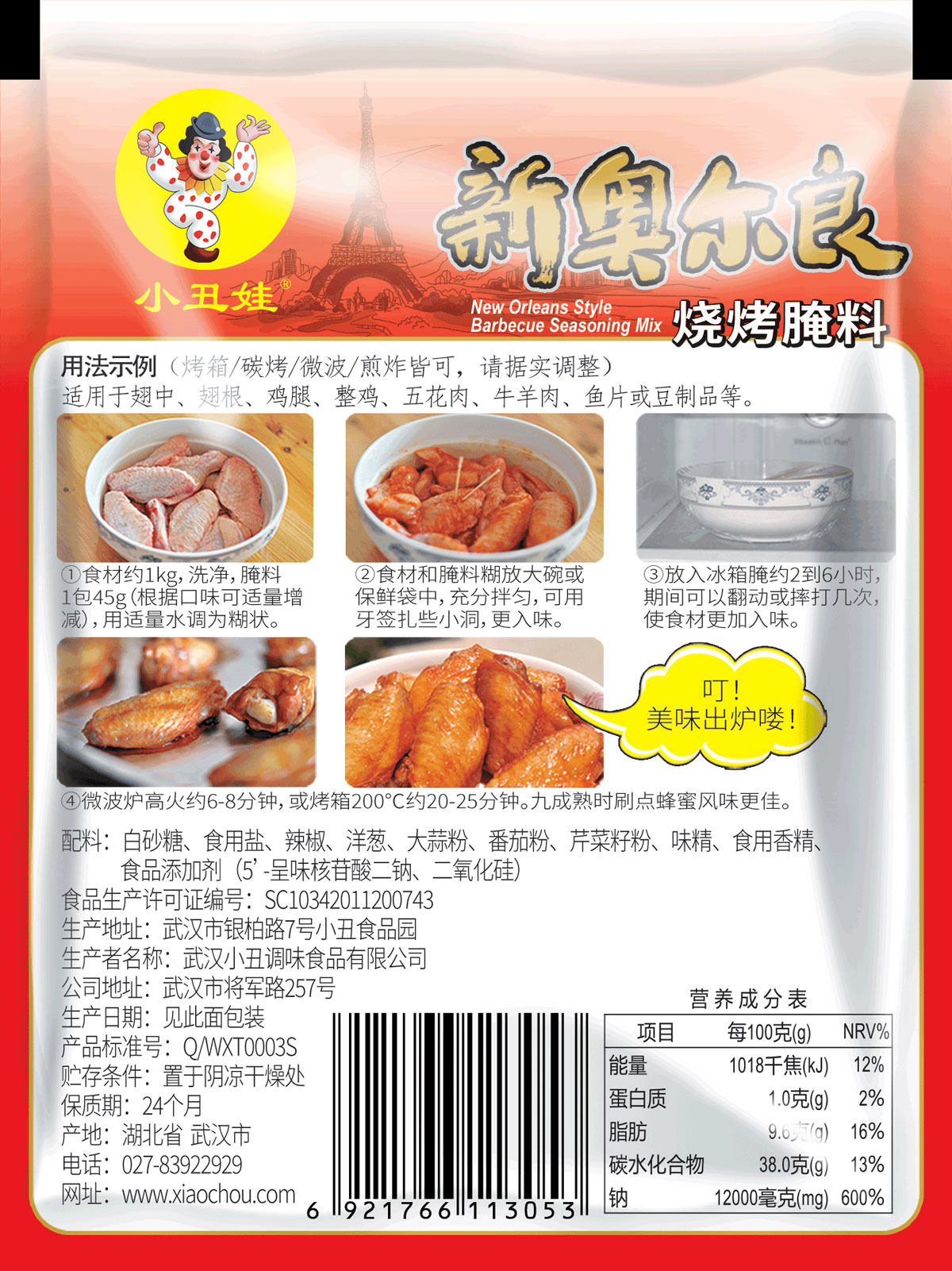 Clown Baby 45g New Orleans BBQ Marinade 1 bag Grilled Chicken Wings BBQ Seasoning Expert Produced