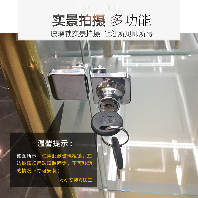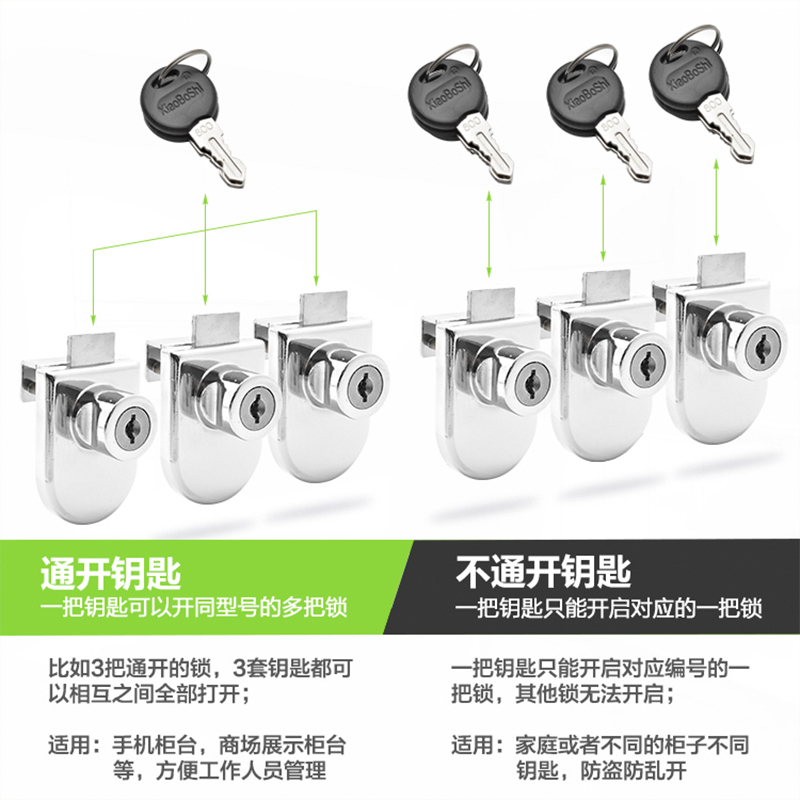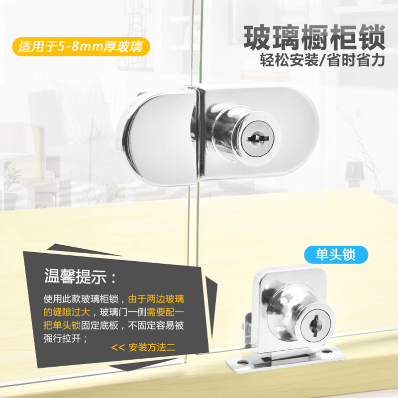 Glass cabinet lock Shopping mall display cabinet door lock Single and double door window lock Mobile phone counter lock Drilling-free cabinet lock