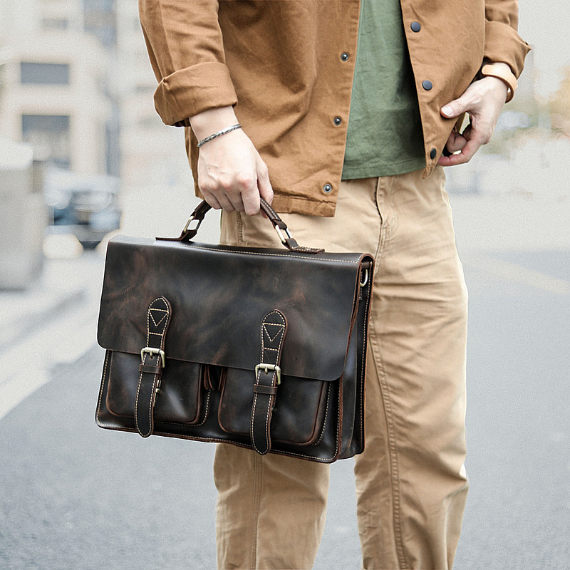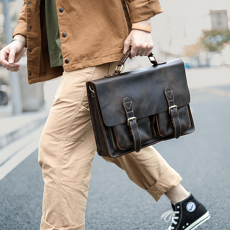 # Sao also #Original Antique Mad Horse Puppet male head skin briefcase leather leather bag for leisure