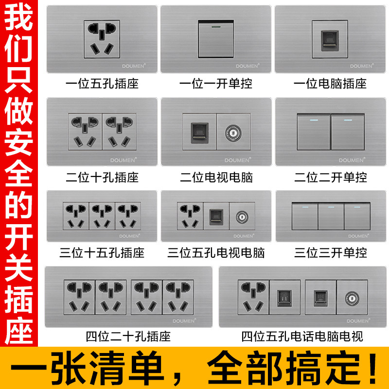 International Electrician Dimming Function Keys 118 Type Wall Stainless Steel Wire Drawing Switch Socket Panel Module Silver