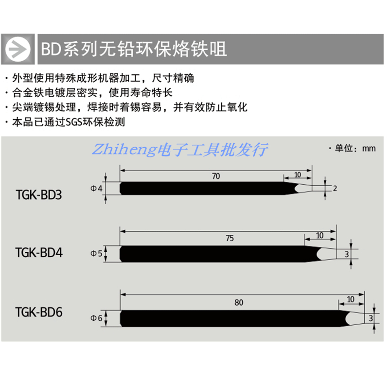 De to high TGK lead-free environmental branded iron head pure copper soldering iron tip Black Diamond soldering iron TGK-BD4
