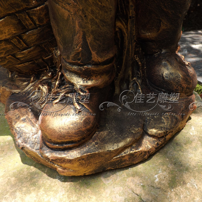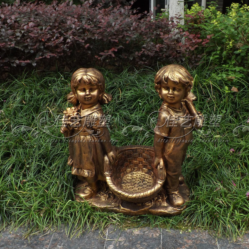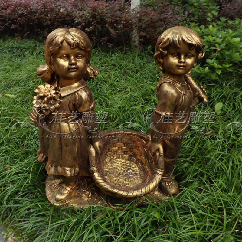 European glass fiber character sculpture art Living room outdoor floor-to-ceiling decoration can be customized as a small couple with a bamboo basket