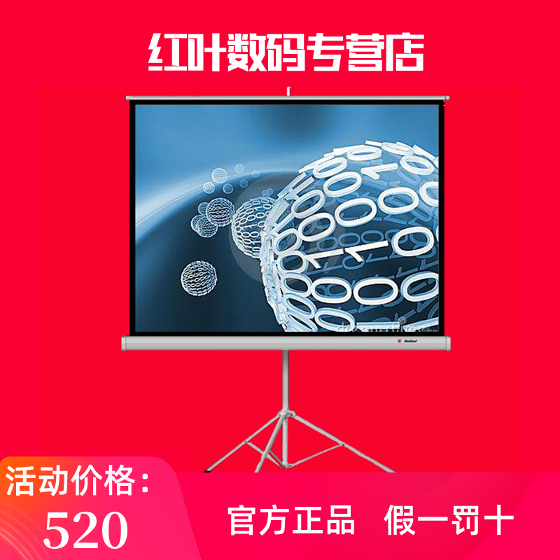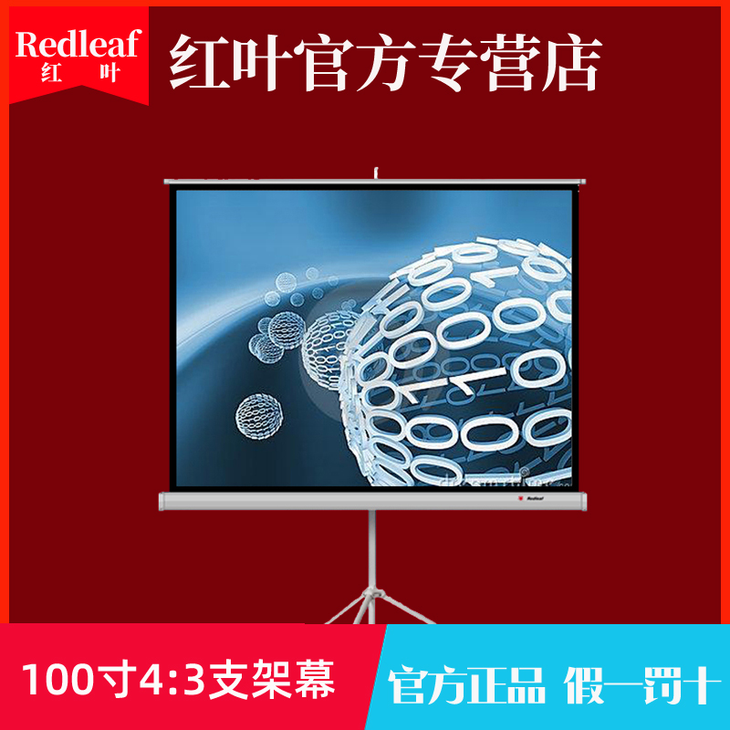 Red Leaf Bracket Curtain 100 Inch 4: 3 White Glass Fiber Office High Definition Simple Outdoor Portable Landing Mobile Curtain Cloth Background Wall Screen Manual Lifting Projector Holder Curtain