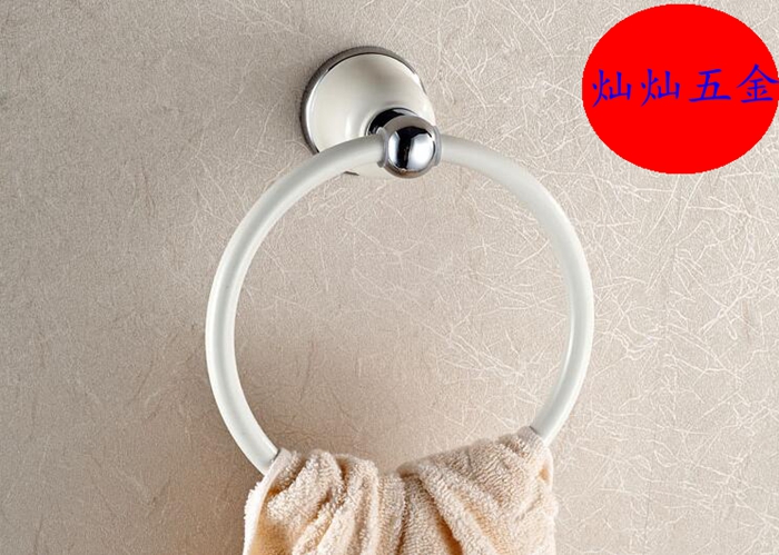 Luxury high-end antique European style all copper ceramic towel ring bathroom pendant white ceramic towel hanging ring