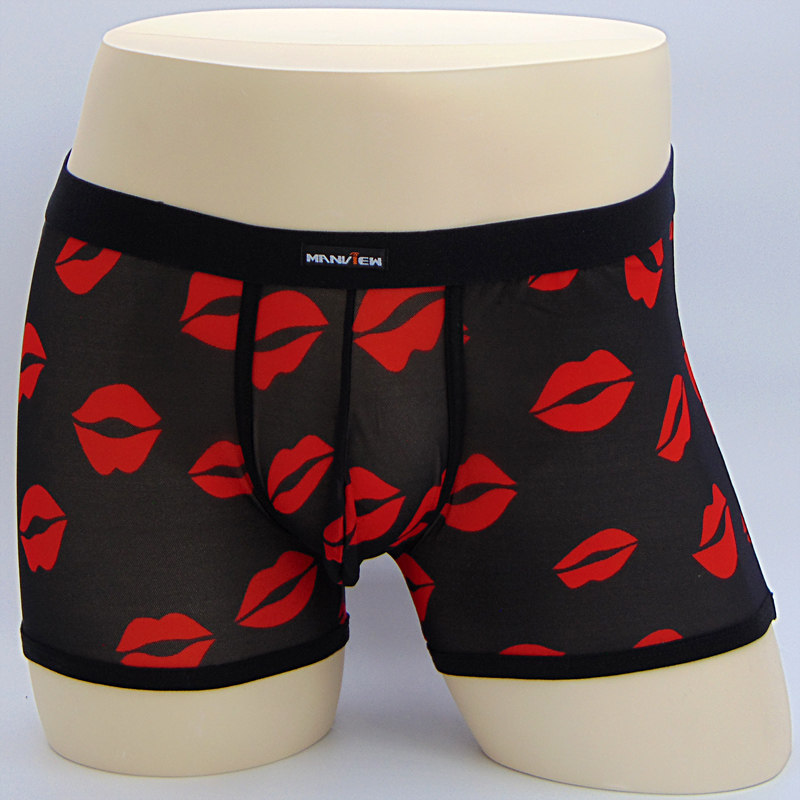 Men's sexy underwear lipstick temptation boxer underwear tight transparent boxer shorts passion perspective convex sexy men