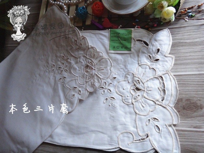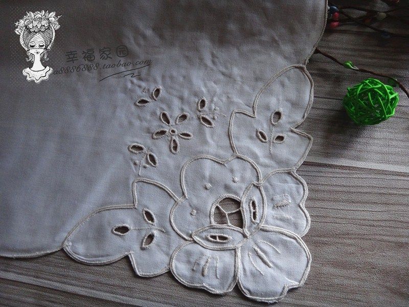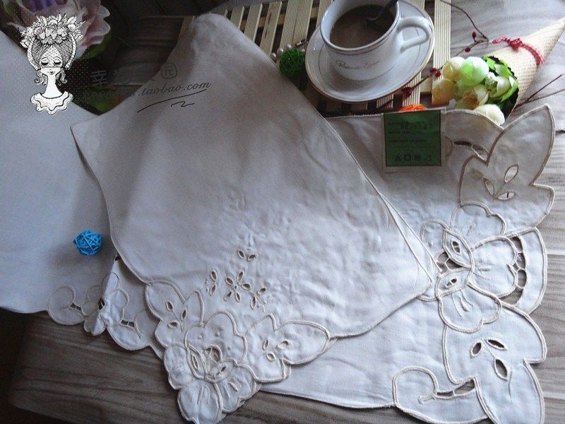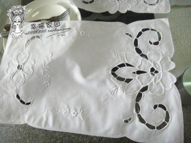 Foreign trade original pure cotton white natural color machinist hollow embroidery table flag * placemat three-piece set special clearance