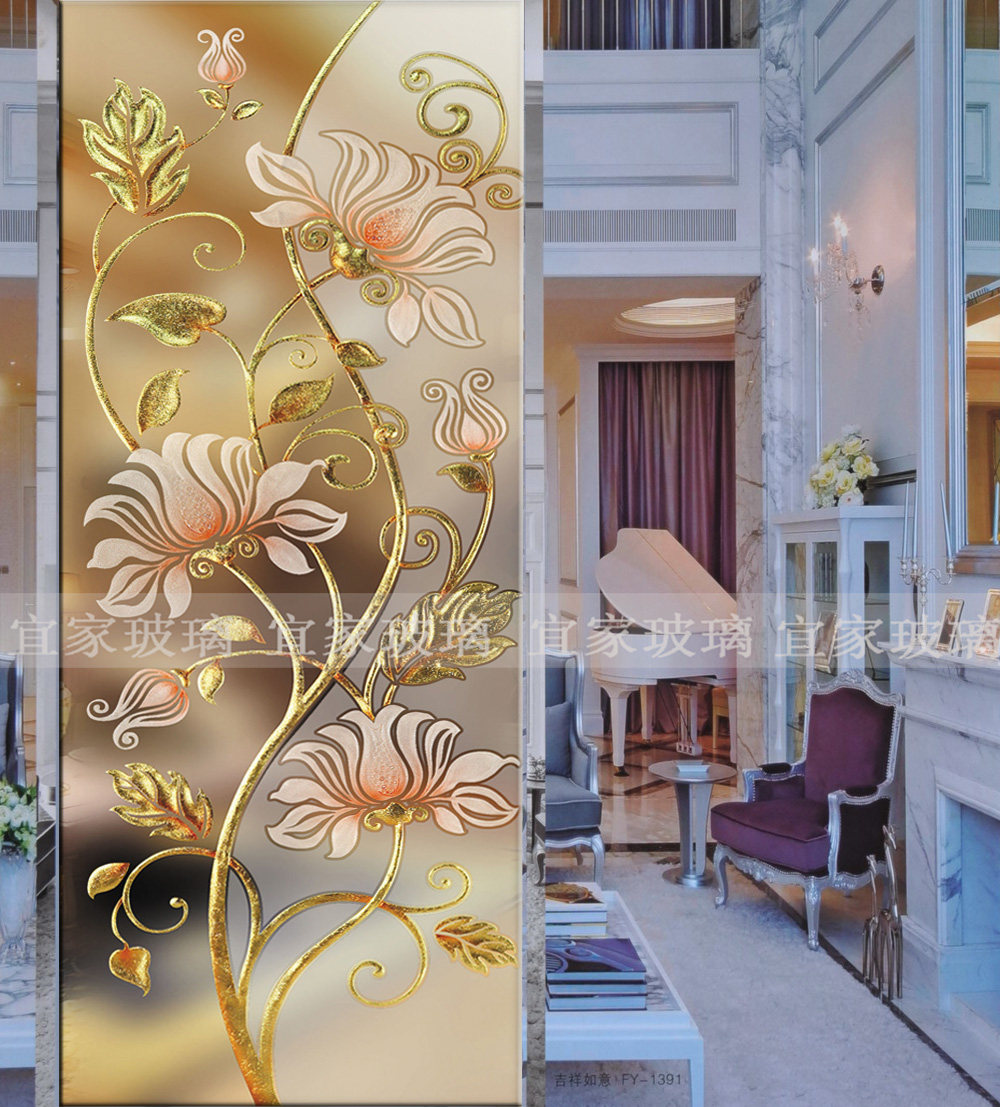 Entrance Art Glass Simple European Light Luxury Translucent Double-sided Tempered Deep Carving Partition Screen Shoe Cabinet Bathroom Aisle