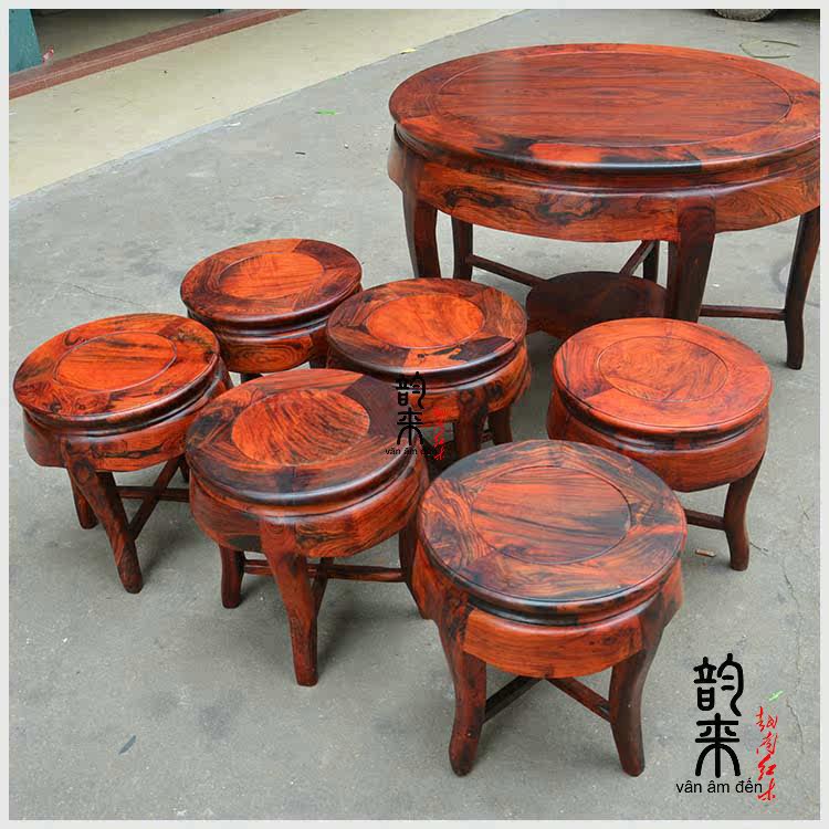 Rhyme to imitate ancient Lao Great red and sour branches Round table stool Chinese vegetarian noodles round table Toe Yellow Sandalwood Furniture