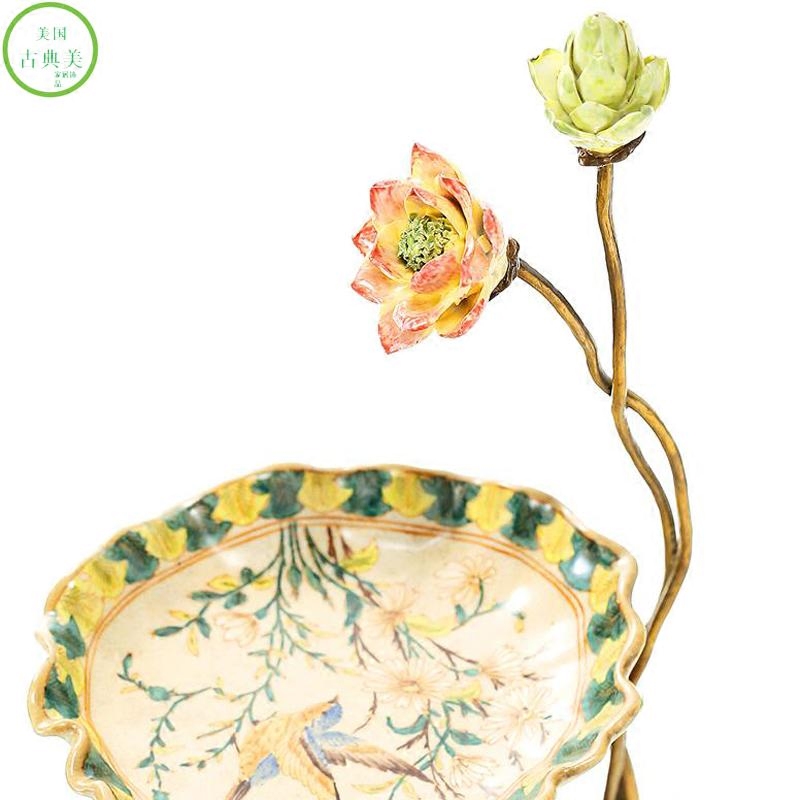 Color painted porcelain bronze fruit tray white porcelain bronze fruit tray hole Sparrow sketching gold porcelain pure copper fruit tray