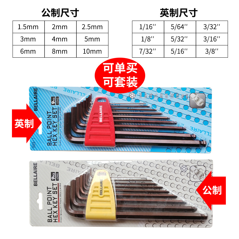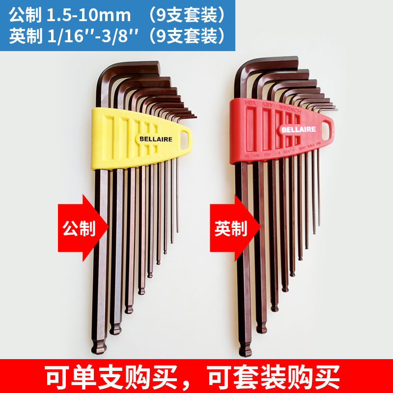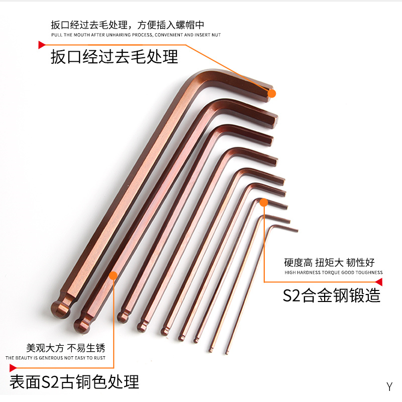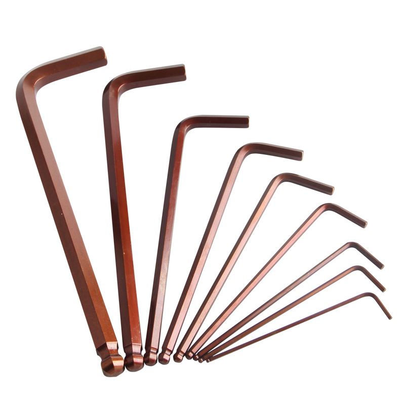 Metric S2 bronze and hardened inner hexagon key wrench general long ball head inch L-type wrench 1 5-2-3-4-6mm