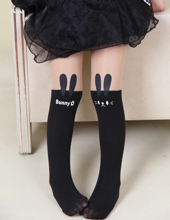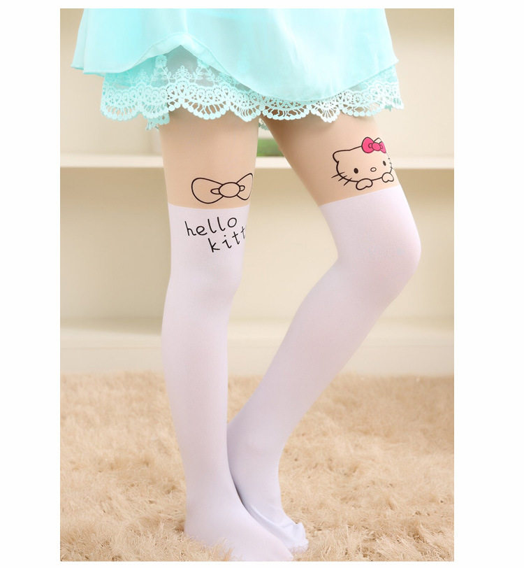 Spring and Autumn Girls Thin Socks Velvet Fake Middle Barrel Pants Children's Stitching Silk Stockings KT Cat Pantyhose