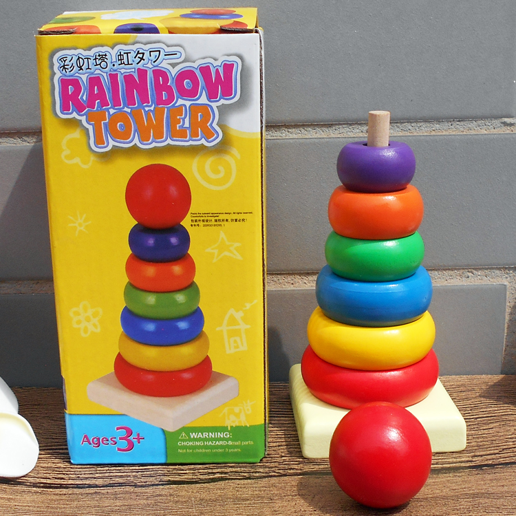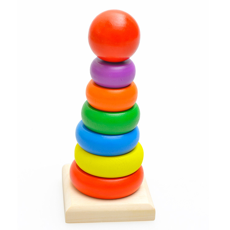 Kindergarten Child Gift Wooden puzzle force Early teaching toy sleeve Tau Rainbow Circle Baby 1-2-3-4 years old