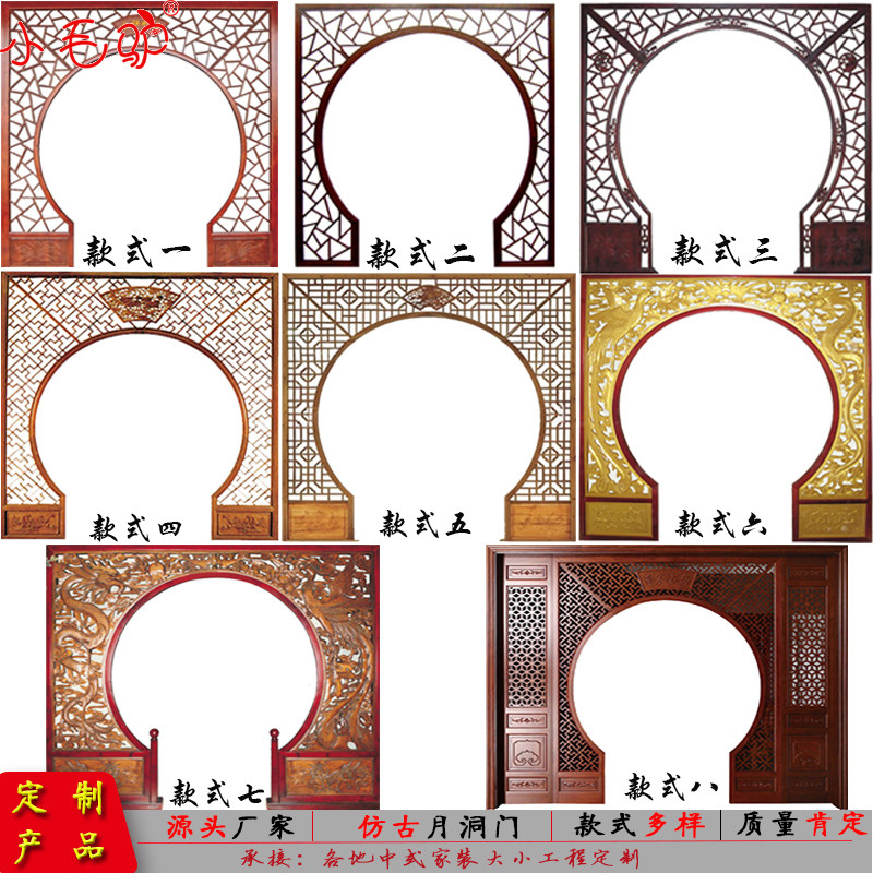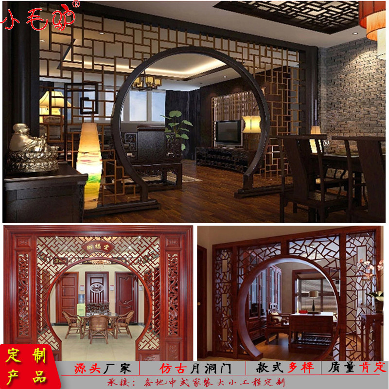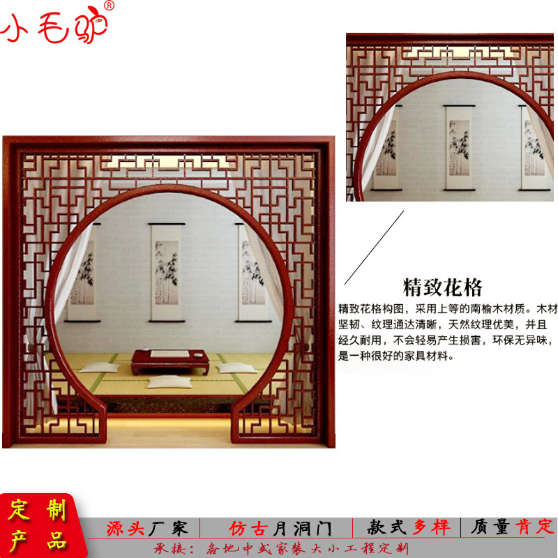 Dongyang wood carving solid wood Chinese partition Antique screen partition Doors and windows Custom moon door Moon hole door Chinese partition