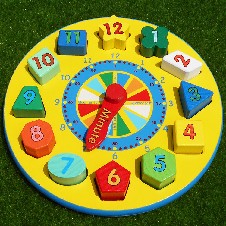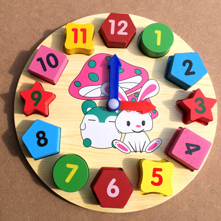 Wooden Children Early Lessons Intelligence Shape Rabbit Clock Building Blocks Pair Toys Digital Clock 2-3-year-old baby