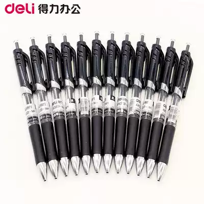 Del S01 neutral pen spring push pen students use 0 5MM carbon black water-based signature water pen black pen