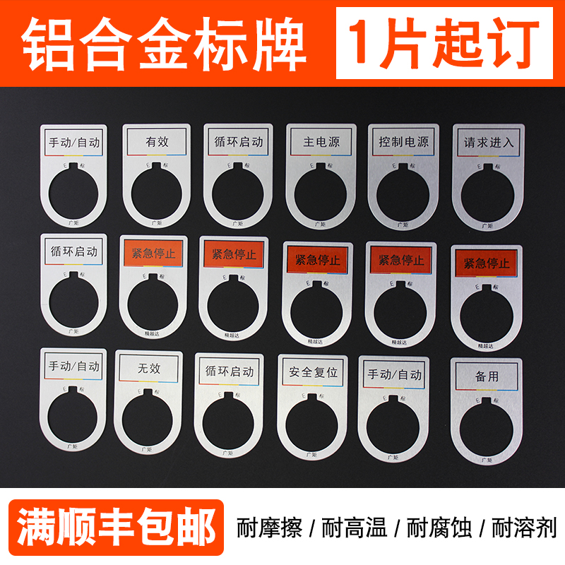 22mm push button switch signal light indicator plate metal sign distribution box label sticker logo frame Aluminum nameplate custom