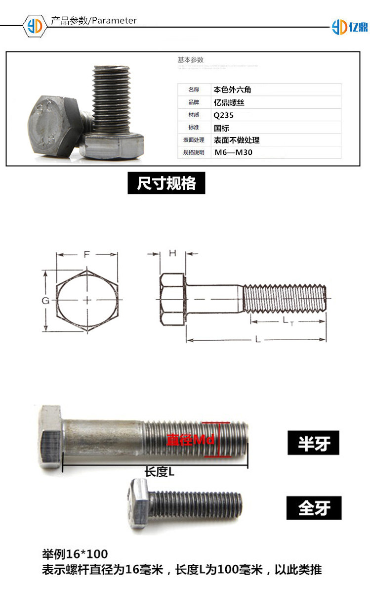 Spot national standard 4 8 color outer hexagonal screws national standard outer hexagonal bolt M6M8M10 series