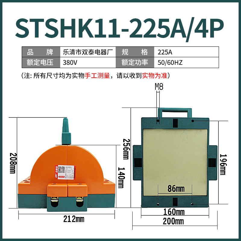 STSHK11-4P-225A double throw knife switch bidirectional reverse switch copper three-phase four-wire dual power supply